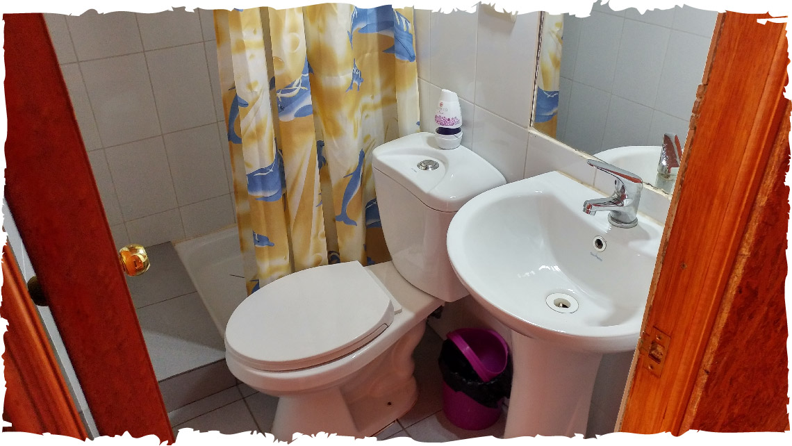 Nuestro hospedaje cuenta con 7 habitaciones matrimoniales con vista al mar, incluye baño privado con agua caliente permanente, calefacción centralizada todo el año, Además cuenta con un Hall de espacios compartidos que incluye sala de lectura, Televisión Digital de Alta Definición y muebles de uso común.